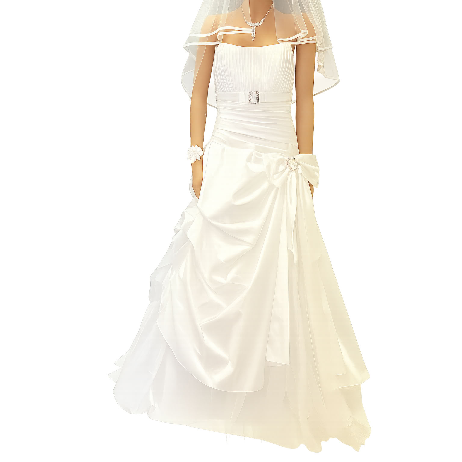 - Koristeet: suuri satiinirusetti, jossa koristeellinen brossi sivulla