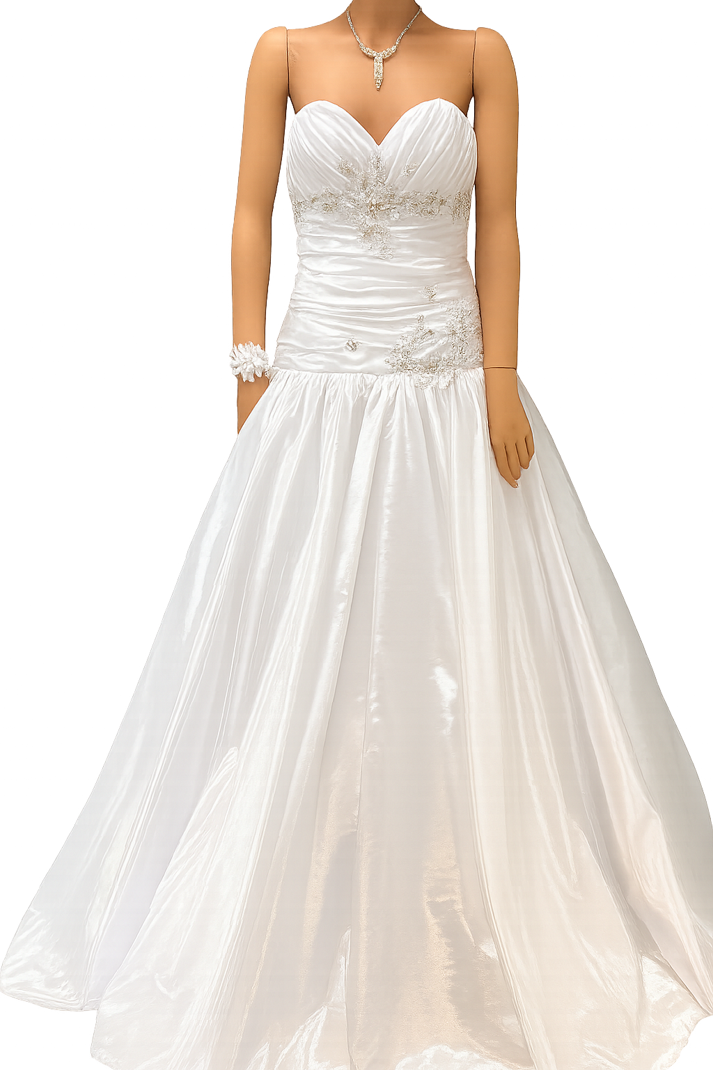 - Materiaali: satiini, koristekirjonta helmillä ja strasseilla